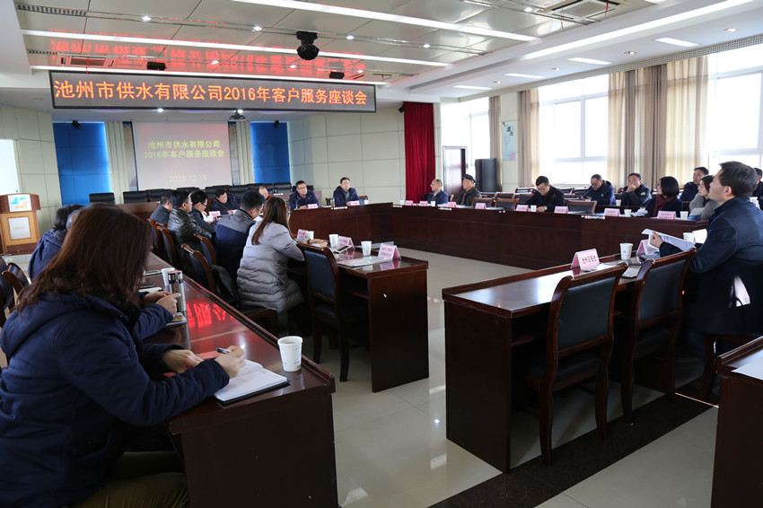 12月16日下午,池州市供水公司客戶服務(wù)座談會(huì)在公司四樓會(huì)議室召開,市公用事業(yè)局李應(yīng)友局長(zhǎng)、各大院校、醫(yī)療單位、物業(yè)公司、重點(diǎn)工業(yè)、媒體記者以及用戶代表等30余位客戶代表應(yīng)邀參加了會(huì)議。公司領(lǐng)導(dǎo)班子成員、窗口部門負(fù)責(zé)人出席會(huì)議。會(huì)議由副總經(jīng)理包洪全主持。