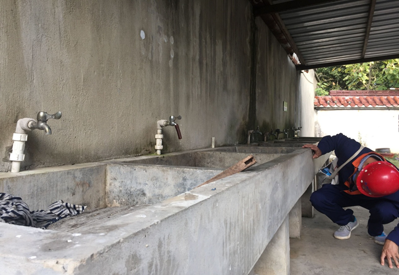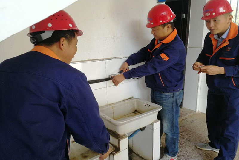 上午九時,志愿者們首先來到學(xué)校的水房,這是他們此行的主要服務(wù)項目。水池已經(jīng)年久失修,水管生銹,龍頭松動,總是有水流出,既浪費了水資源,還使整個水池周圍的地面濕滑,造成了一定的安全隱患?吹竭@種情況,志愿服務(wù)隊的工作人員二話不說,拿起了拖布就開始拖地,把整個水房的地面清理的一塵不染。服務(wù)隊員不怕臟不怕累,徒手對老化的水管進行了維修,換掉了老舊的水龍頭,還用膠布把接頭部分進行纏繞,以免日久再有漏水的現(xiàn)象。大家相互配合,做事有條不紊,盡心盡力地把服務(wù)工作做好,像給自家做事一樣認真負責(zé)。