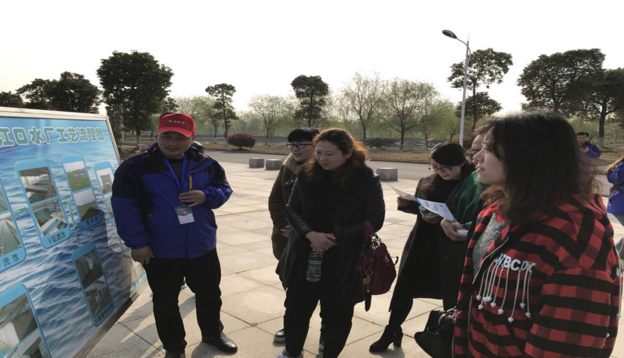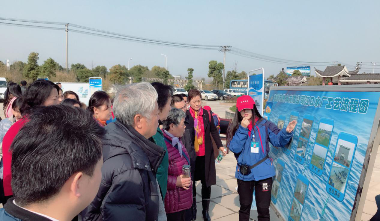 當(dāng)天上午9點,艷陽高照,春風(fēng)和暖,來自安徽省324地質(zhì)隊的、東湖社區(qū)和古舜社區(qū)的市民80余人,分乘兩輛大巴車、懷著愉悅和新奇的心情,來到了池州市江口水廠。