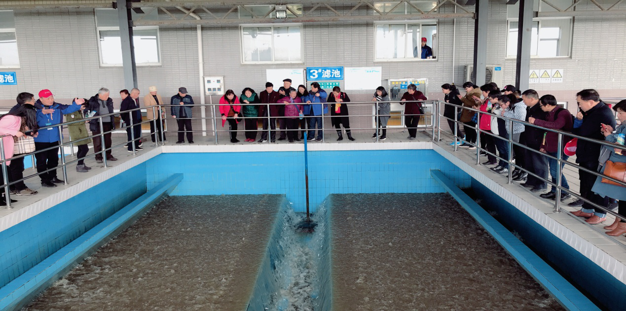 大家在講解員的帶領(lǐng)下,井然有序地對水廠進(jìn)行參觀,實地感受制水過程。他們分批次的先后參觀過加藥間、加氯間、水力折板絮凝池、V型濾池、清水池、送水車間、化驗室、中控室等全部制水環(huán)節(jié),見證了自來水從渾濁到清澈的漸變過程,直觀了解自來水制水的工藝與流程及水質(zhì)檢測、生產(chǎn)調(diào)度等供水知識。供水公司還特意安排了現(xiàn)場觀看氣水反沖洗過程環(huán)節(jié)。
