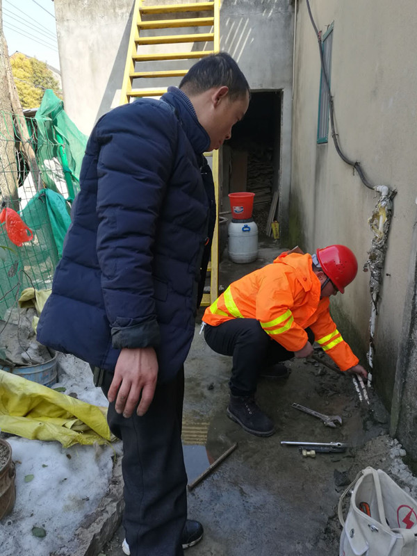 25日清早,大雪紛飛,錢(qián)程剛泡好茶正準(zhǔn)備喝上一口,就接到用戶(hù)打來(lái)的電話(huà),反映江口村幾戶(hù)家中無(wú)水,他二話(huà)沒(méi)說(shuō)立即帶上工具趕往現(xiàn)場(chǎng)。到達(dá)現(xiàn)場(chǎng)后詢(xún)問(wèn)后得知該村有兩個(gè)組共六十余戶(hù)沒(méi)水或家中水小,他很著急,心想:這個(gè)大雪天,村里60多戶(hù)老老少少?zèng)]有水怎么生活!刻不容緩,他立即圍繞這兩個(gè)組周?chē)墓芫W(wǎng)進(jìn)行巡查,憑他多年維修經(jīng)驗(yàn)判斷感覺(jué)是管道漏水泄壓造成的,經(jīng)過(guò)1個(gè)小時(shí)的巡查,果然在一個(gè)池塘邊發(fā)現(xiàn)一處DN63PVC管道裂開(kāi),水正往池塘里漏,他立刻關(guān)閥止水,并立刻拿來(lái)?yè)屝薰ぞ咝迯?fù)管道,冰雪天,冷水刺骨,在冷水里泡了1個(gè)多小時(shí)雙手早已凍的發(fā)紫,他咬牙堅(jiān)持著,終于將管道修復(fù)好,村里60多戶(hù)村民能用上水了,可此時(shí)的他已快成為一個(gè)雪人了,村民們感動(dòng)的都要紛紛拉他到家里喝上杯熱茶暖暖身子,“這是我應(yīng)該做的”說(shuō)完后,錢(qián)程就急著要趕到另一個(gè)搶修現(xiàn)場(chǎng)。