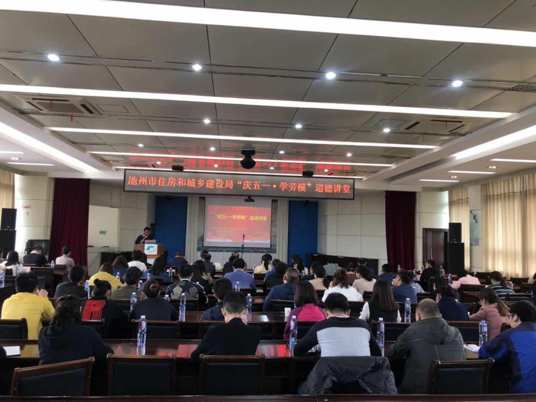 為弘揚勞模精神、勞動精神、工匠精神,營造學(xué)習(xí)典型、創(chuàng)先爭優(yōu)的濃厚氛圍,4月26日下午,市住房和城鄉(xiāng)建設(shè)局機(jī)關(guān)黨委、市建設(shè)建材工會主辦、市供水有限公司承辦了以“慶五一·學(xué)勞模”為主題的道德講堂活動。池州市住房和城鄉(xiāng)建設(shè)局黨組副書記、副局長余祖平、總工會調(diào)研員趙桂萍、市文明辦副調(diào)研員王家才、市建設(shè)建材工會主席方學(xué)松出席活動,局管、局屬各單位黨員代表、團(tuán)員代表和基層工會職工代表以及房地產(chǎn)、建筑行業(yè)企業(yè)代表共計80余人參加了本次活動。