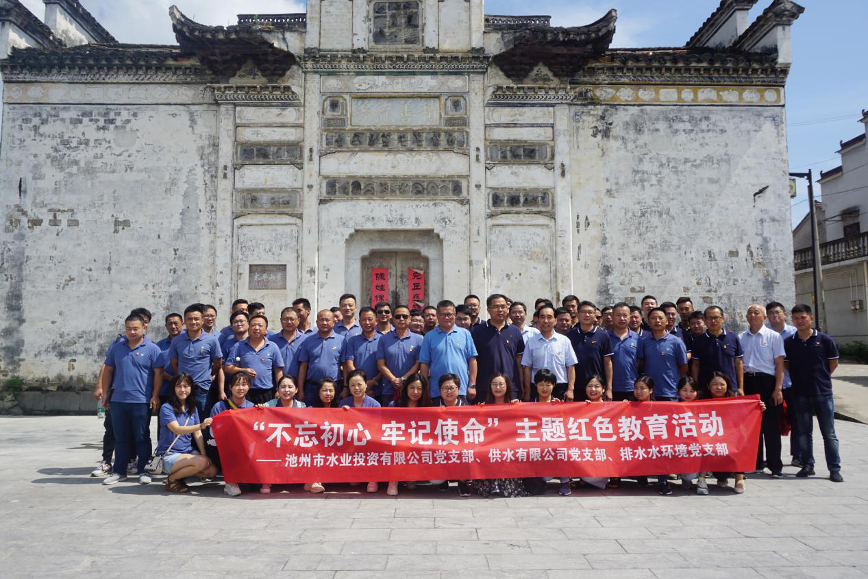 為紀(jì)念中國共產(chǎn)黨成立98周年,全面推進支部的組織建設(shè),激勵全體黨員繼承和發(fā)揚黨的優(yōu)良傳統(tǒng)和作風(fēng),進一步增強支部的凝聚力、戰(zhàn)斗力和號召力,7月11日,池州市水業(yè)投資公司黨支部、市供水公司黨支部、市排水水環(huán)境黨支部共同赴青陽縣組織了一次“不忘初心 牢記使命”主題紅色教育活動。三公司黨支部全體黨員、發(fā)展對象和積極分子共60余人參加本次活動。