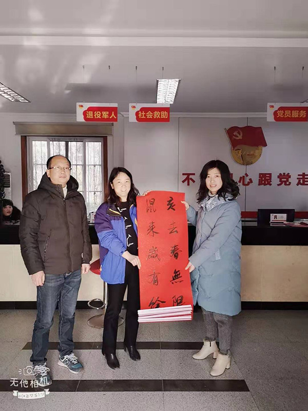 隨著鼠年春節(jié)的臨近,寫春聯(lián)、送春聯(lián)、送祝;顒(dòng)也愈發(fā)熱鬧起來(lái)。跟往年一樣,池州市供水有限公司早早謀劃、請(qǐng)專人撰寫春聯(lián)并于2020年1月19日,由王忠榮副總經(jīng)理帶隊(duì),深入平天湖社區(qū)、東湖路社區(qū),開展送春聯(lián)迎新春活動(dòng)。