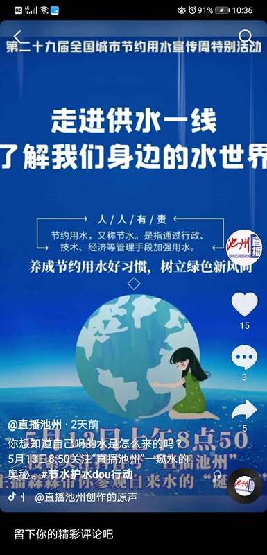 “使用抖音直播等宣傳工具是我們基于疫情防控需要的慎重考慮,同時也是抓住時代脈搏、跟上新興媒體做好宣傳工作的有益嘗試,我們最終愿望是希望更多人的能珍惜水資源、養(yǎng)成節(jié)約用水好習(xí)慣”,池州供水公司相關(guān)領(lǐng)導(dǎo)接受采訪時表示,“同時,我們希望一直以來關(guān)心、愛護我們的社會各界領(lǐng)導(dǎo)、用戶和好朋友們能更深入、細致、直觀的了解我們,一如既往地支持我們,同時,我們也用這樣的方式告訴更多的人,奮斗,我們一直在路上!