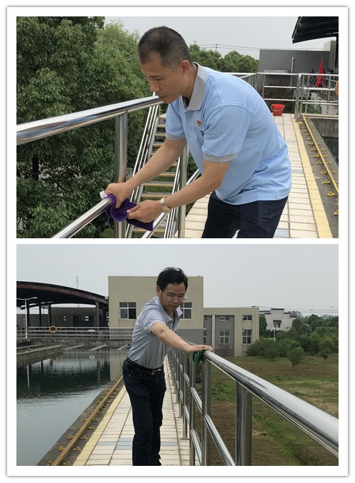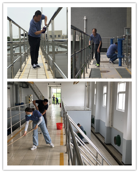 5月28日下午,初夏的江口水廠人頭攢動,由支部書記、董事長楊觀樂同志帶隊、總經(jīng)理李張兵親自參與的清潔水廠活動準時開始。為了達到“比學趕超”的效果,清掃隊50余人共分6個小組,對廠區(qū)6個區(qū)域進行包保清潔。在反沖洗泵房里,他們揮汗如雨,用拖把擦洗著每一塊瓷磚;在濾池和平流池上,他們不知疲倦,用抹布擦拭著每一處欄桿;在加藥間中,他們認真細致,用掃帚清掃每一處的衛(wèi)生死角;在送水車間里,他們專心致志,用清水沖刷著每一處地面,他們用實際行動彰顯池城供水“守護者”身份。