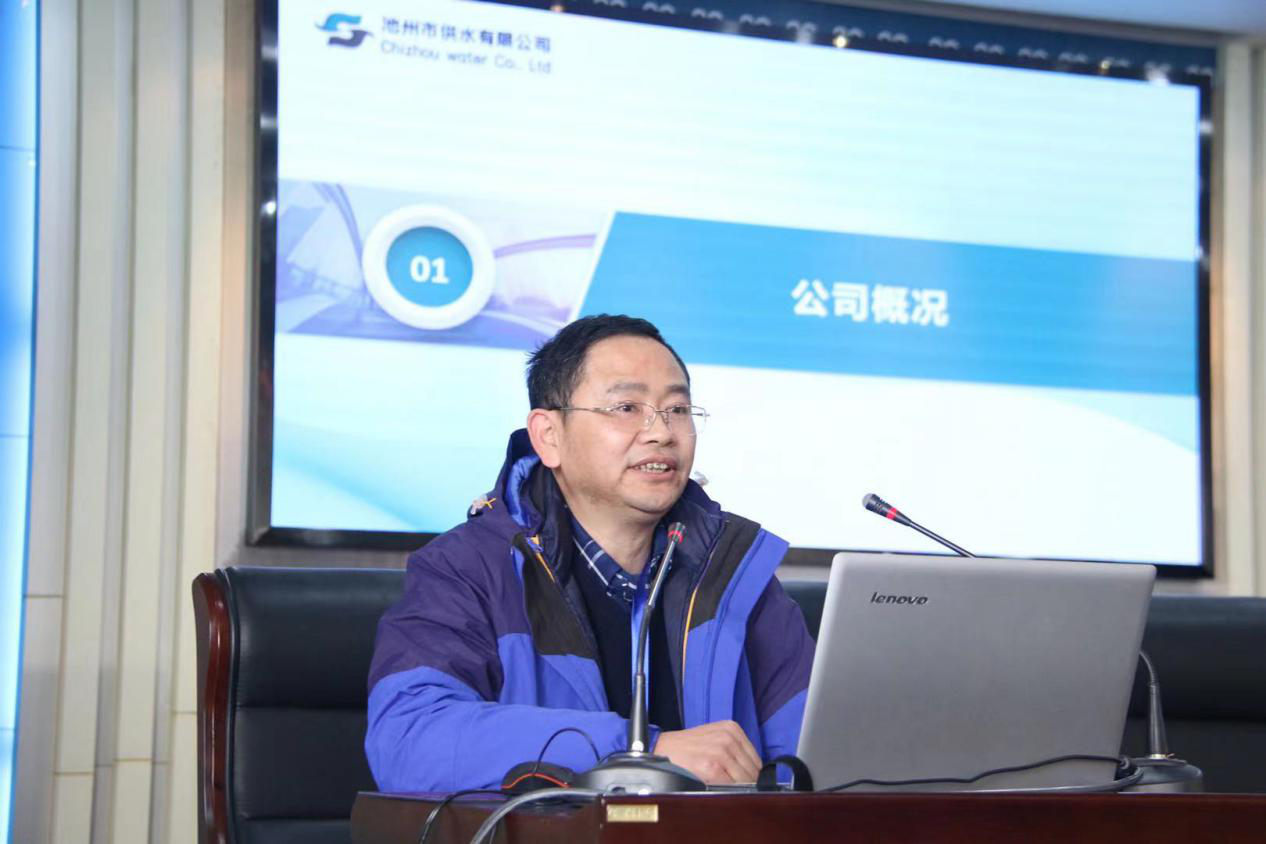 代表們首先觀看了池州水務宣傳片,然后李張兵總經(jīng)理向與會代表簡要介紹了池州供水的發(fā)展狀況、經(jīng)營指標、組織架構(gòu)、企業(yè)文化、安全保障、二次供水等內(nèi)容。在面對新冠肺炎疫情,供水公司主動作為承擔社會責任,助推復工復產(chǎn),支持欠費不停供、中小微企業(yè)用水優(yōu)惠、減免特困戶水費等具體抗疫政策扎實落地;持續(xù)聚焦客戶需求,加快市政管網(wǎng)建設,強化安全供水管理,解決客戶痛點、難點問題,取得了顯著社會效益。