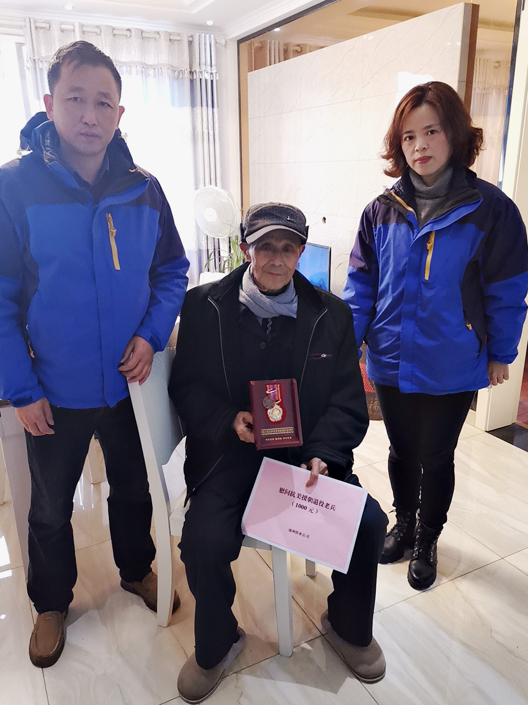 工會(huì)主席施潔認(rèn)真傾聽老人講述親身經(jīng)歷和革命事跡,關(guān)切地詢問老人的身體狀況和家庭生活情況。施潔說,您是參加過抗美援朝的老兵,是黨和國(guó)家的功臣。希望您保重身體,快樂生活,安享晚年。得知左新德的孫子也是軍人的情況后,施潔由衷稱贊他們傳承紅色基因、獻(xiàn)身國(guó)防事業(yè)的良好家風(fēng)。最后,施潔還叮囑老人和他兒子,如果有供水相關(guān)問題,供水公司一定第一時(shí)間為老英雄協(xié)調(diào)、處理。