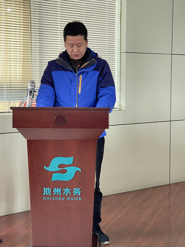 會上,李張兵總經(jīng)理作《堅定信心 勇往直前 奮力奪取2022年各項工作的全面勝利》動員和部署講話。他首先感謝春節(jié)期間水廠、客服、搶修等崗位的一線員工,舍小家、為大家,日夜堅守、樂于奉獻,確保了池城安全優(yōu)質(zhì)供水。他向大會下達2022年各項生產(chǎn)經(jīng)營指標、重點工作任務和33項主要工作,及各部門重點工作,并將各項工作分解、落實到各責任人、責任部門和辦結(jié)時限。他要求公司全體員工一要迅速走出節(jié)日氛圍,全面啟動節(jié)后各項工作,要守規(guī)矩,改作風、早謀劃,真實干;二要突出五項核心工作(水價調(diào)整、城鄉(xiāng)供水一體化工程、制度梳理與流程完善、智慧水務建設、產(chǎn)銷差控制),毫不動搖地實現(xiàn)既定目標任務;三要注重學習,持續(xù)提升公司發(fā)展的能力;