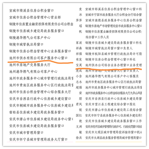 近日,省文明辦、省住房城鄉(xiāng)建設(shè)廳下發(fā)的《關(guān)于在全省住房城鄉(xiāng)建設(shè)系統(tǒng)開展文明服務(wù)窗口創(chuàng)建和文明服務(wù)標(biāo)兵選樹活動(dòng)的通知》(建會(huì)函〔2021〕898 號(hào)),池州市供水有限公司客戶服務(wù)中心被評(píng)為2021年度全省住房和城鄉(xiāng)建設(shè)系統(tǒng)“文明服務(wù)窗口”稱號(hào),唐寶英同志榮獲“文明服務(wù)標(biāo)兵”稱號(hào)。