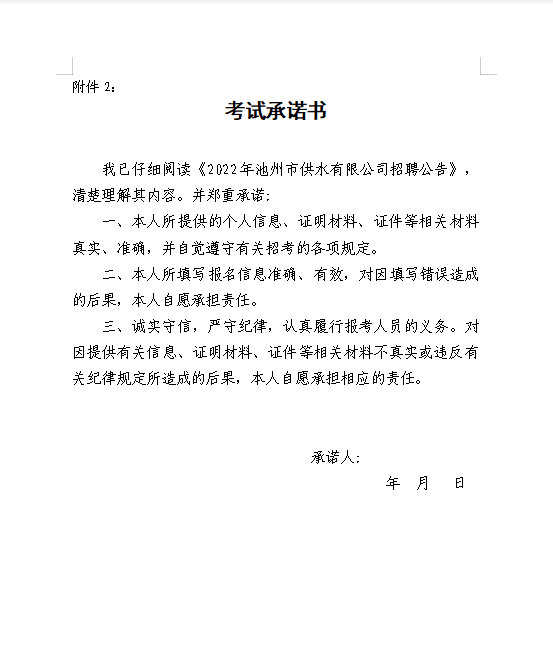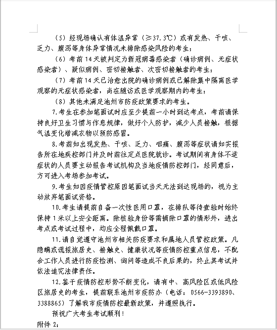 附件:1、池州市供水有限公司招聘工作人員筆面試疫情防