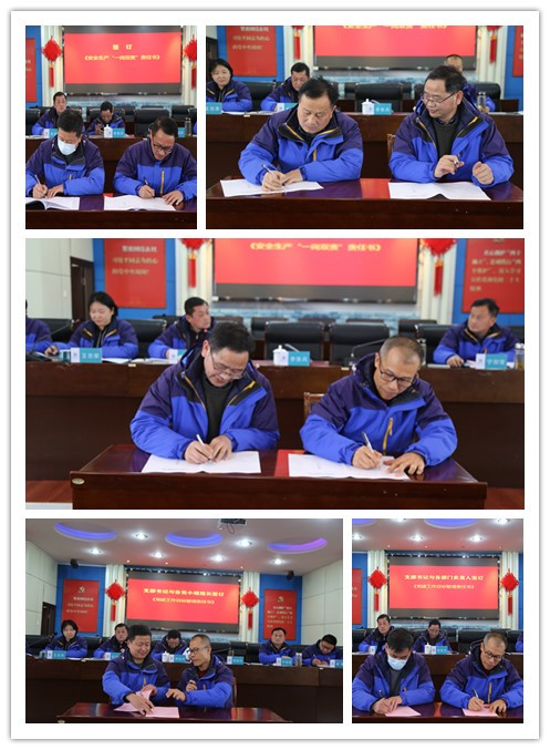 隨后,公司高管、各部門負(fù)責(zé)人、各小組組長簽署安全生產(chǎn)、一崗雙責(zé)、經(jīng)營業(yè)績、黨風(fēng)廉政等各項責(zé)任書,各分管領(lǐng)導(dǎo)對分管部門作工作要求,相關(guān)部門作表態(tài)發(fā)言。