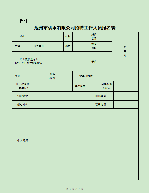 附件:2023年池州市供水有限公司招聘工作人員報(bào)名表