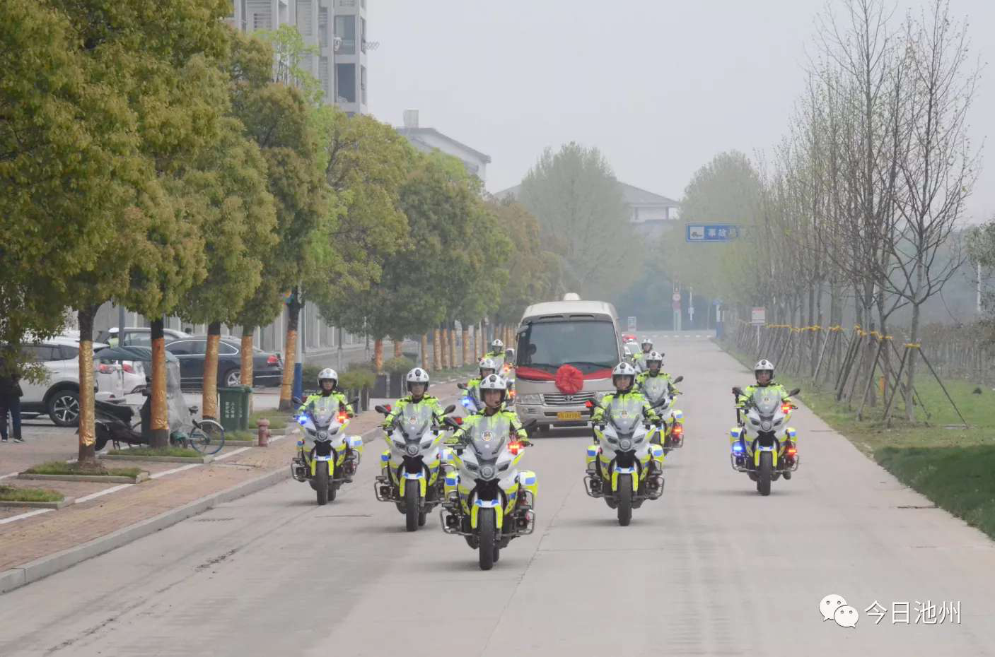 上午10點48分,警燈閃亮輝煌,9名交警鐵騎開道護航著懸掛“歡迎池州市援鄂醫(yī)療隊凱旋歸來”的中巴車,載著7名首批英雄迎面而來,供水公司人員紛紛拿起相機,拍下這珍貴的一刻,有人不自覺地舉起了致敬的手。