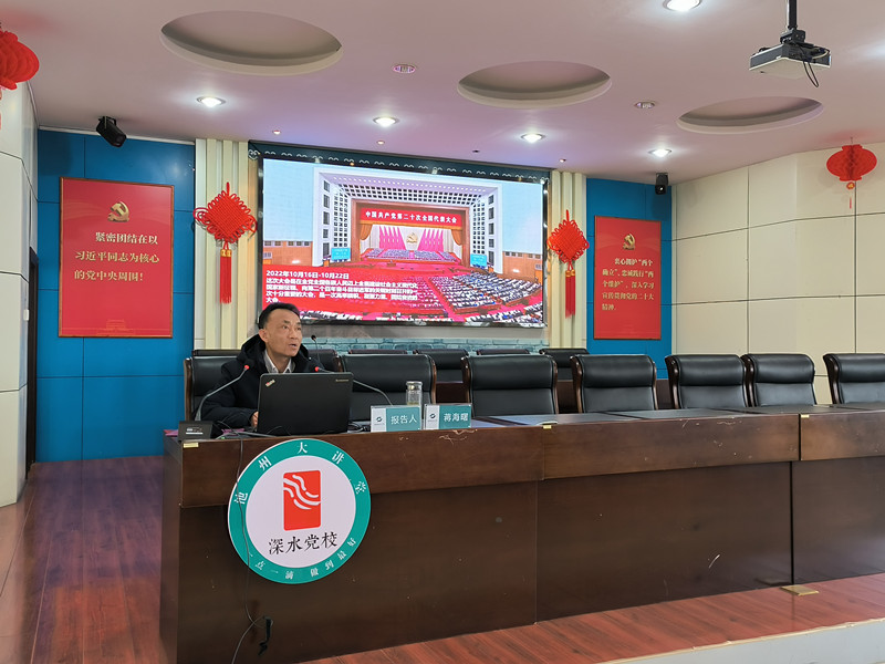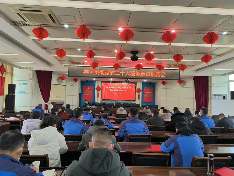 1月5日,池州建設投資集團有限公司黨委書記兼董事長蔣海曙到供水公司,為全體黨員干部宣講黨的二十大精神,供水公司黨支部書記兼董事長楊觀樂主持報告會。