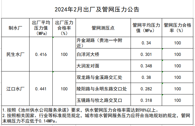 ----------------------------------------------------------------------------------- 上一篇:2024年1月出廠及管網壓力... 下一篇:池州市城市公共供水水質信息公... |