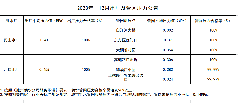 | 2023年1-12月出廠及管網(wǎng)壓力公告 | |