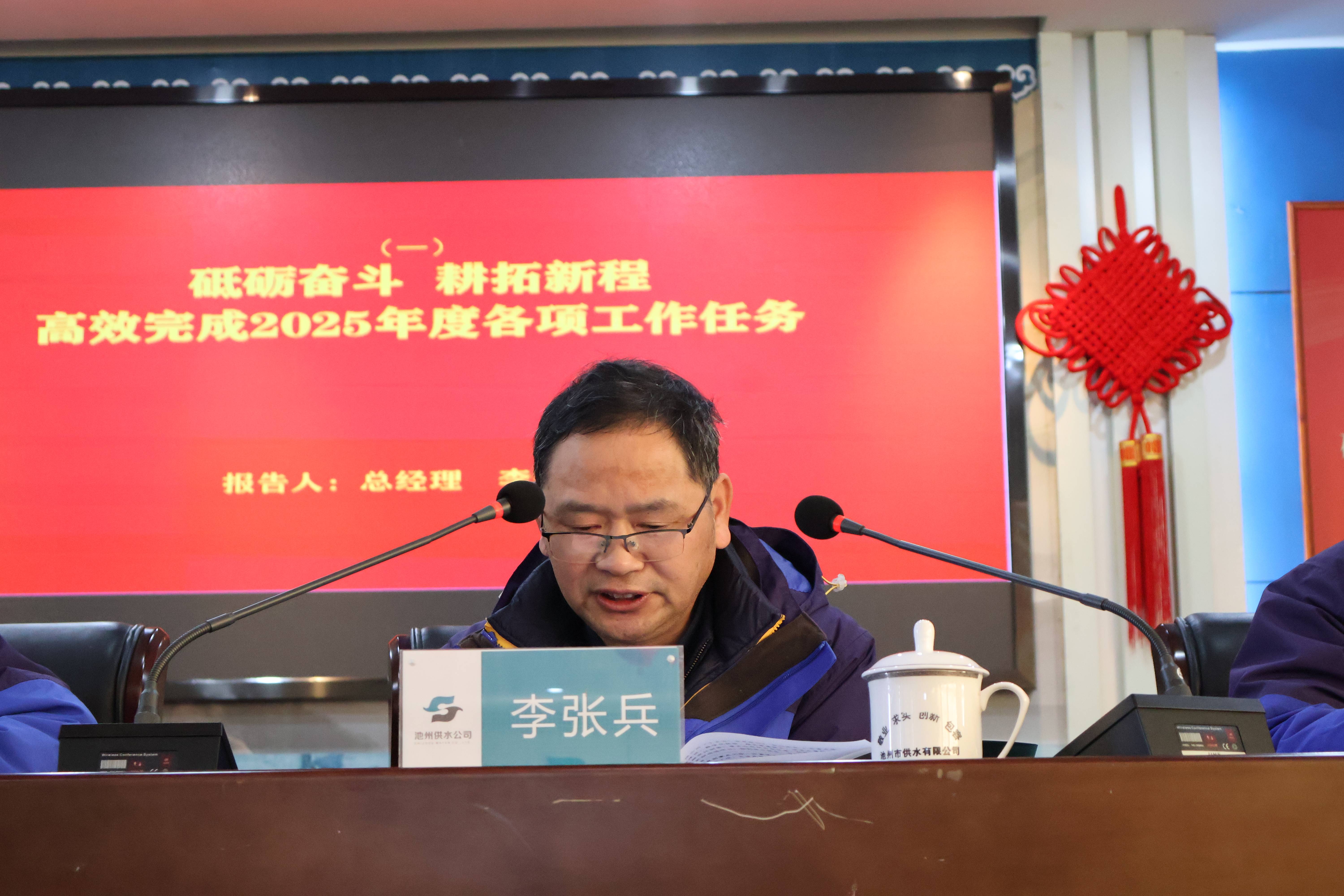 策馬揚(yáng)鞭啟新程,擊鼓催征再出發(fā)。2月13日,池州供水公司召開(kāi)2025年度生產(chǎn)經(jīng)營(yíng)目標(biāo)任務(wù)部署大會(huì),明確發(fā)展方向,全面部署重點(diǎn)工作,奮力推動(dòng)新一年各項(xiàng)工作開(kāi)創(chuàng)新局面、邁上新臺(tái)階。公司除當(dāng)班人員外近百人參加會(huì)議,副總經(jīng)理包洪全主持會(huì)議.