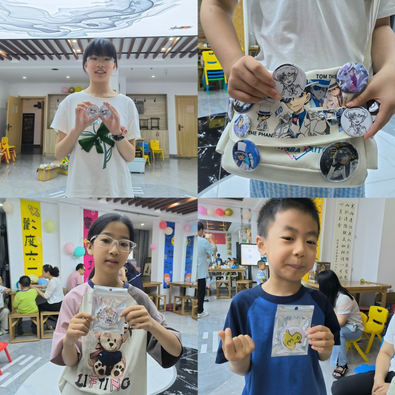 本次活動以“玩中學(xué)、學(xué)中樂”為宗旨,通過趣味游戲、手工實踐等形式,為兒童提供多樣化成長體驗。活動設(shè)置的項目豐富多彩,有親手制作流行單品“吧唧”、非遺文化扎染體驗,親子小游戲“找媽媽”“找寶寶”