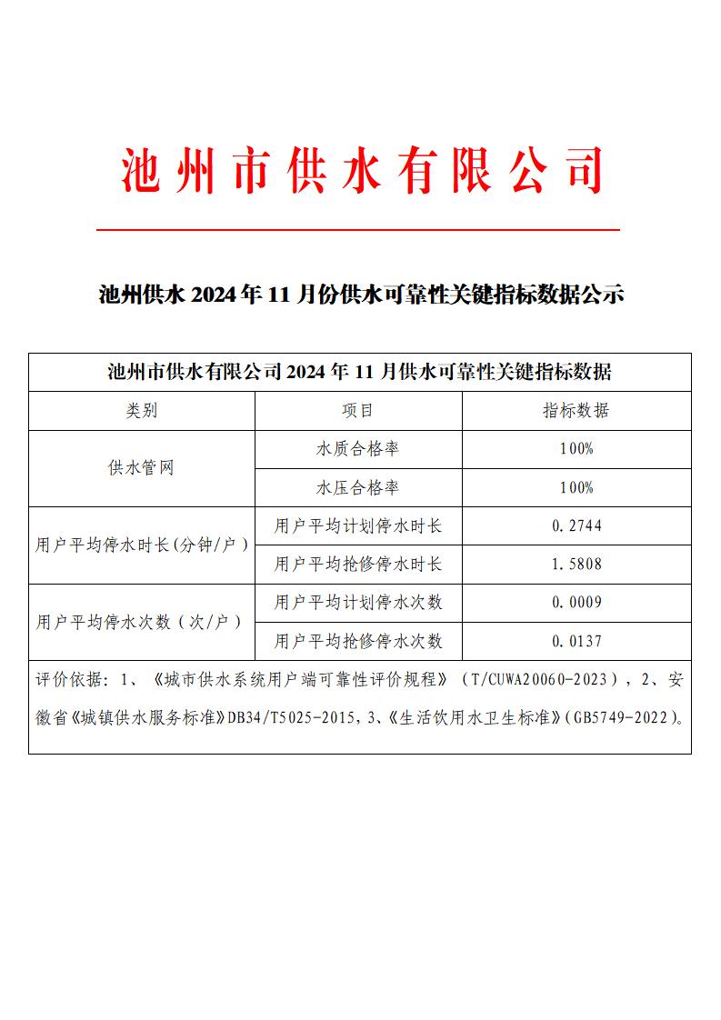 | 池州供水2024年9-12月份池州供水可靠性關(guān)鍵指標(biāo)數(shù)據(jù)公示 | |
