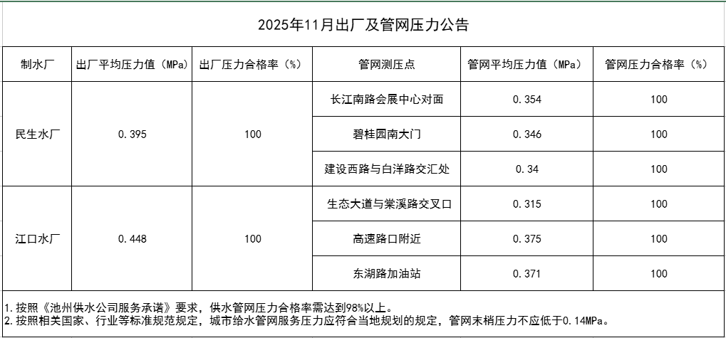 | 2025年11月出廠及管網(wǎng)壓力公告 | |