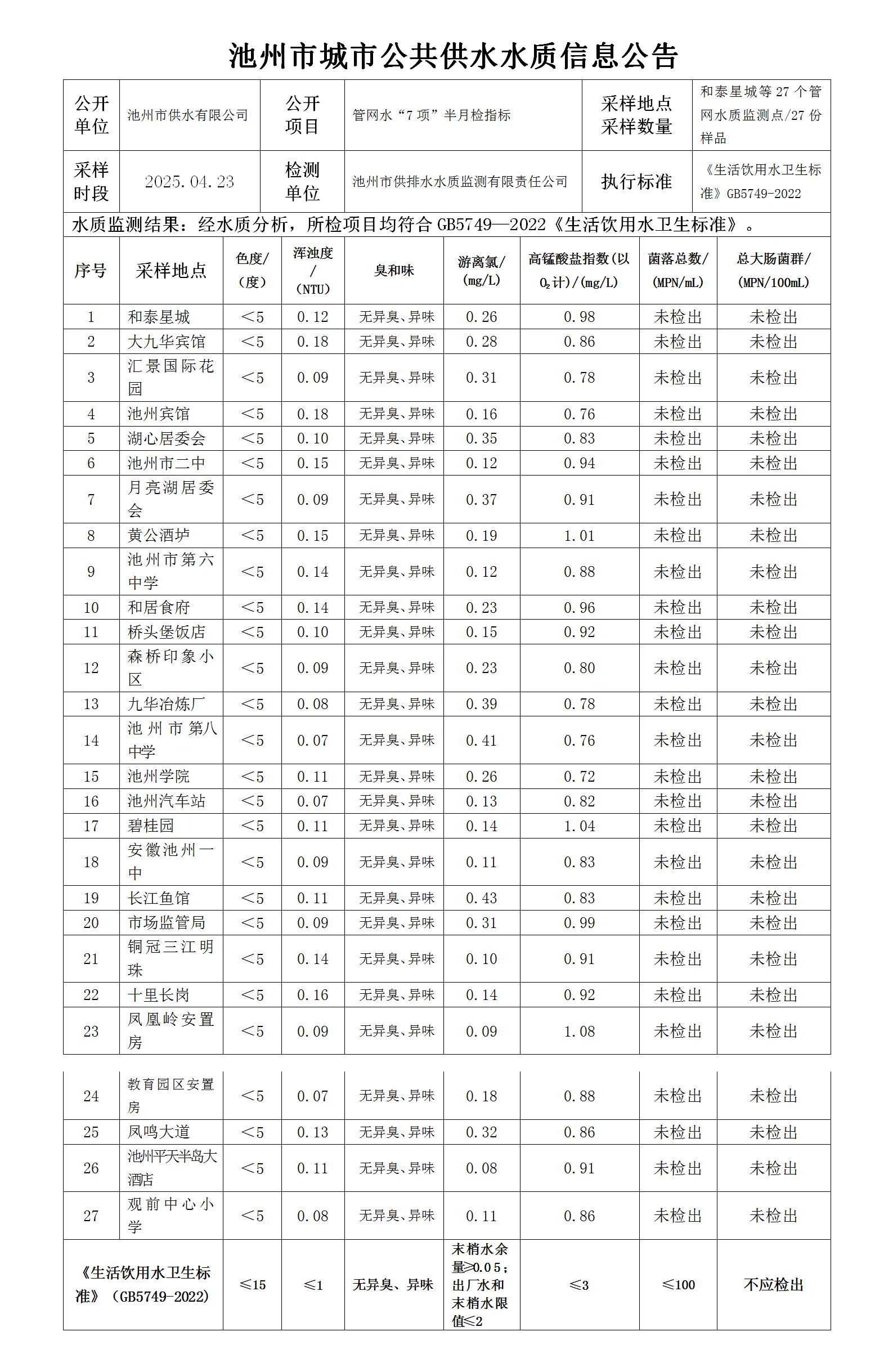 | 池州市城市公共供水水質(zhì)信息公告管網(wǎng)水“7項”半月檢指標(biāo)4-2 | |
